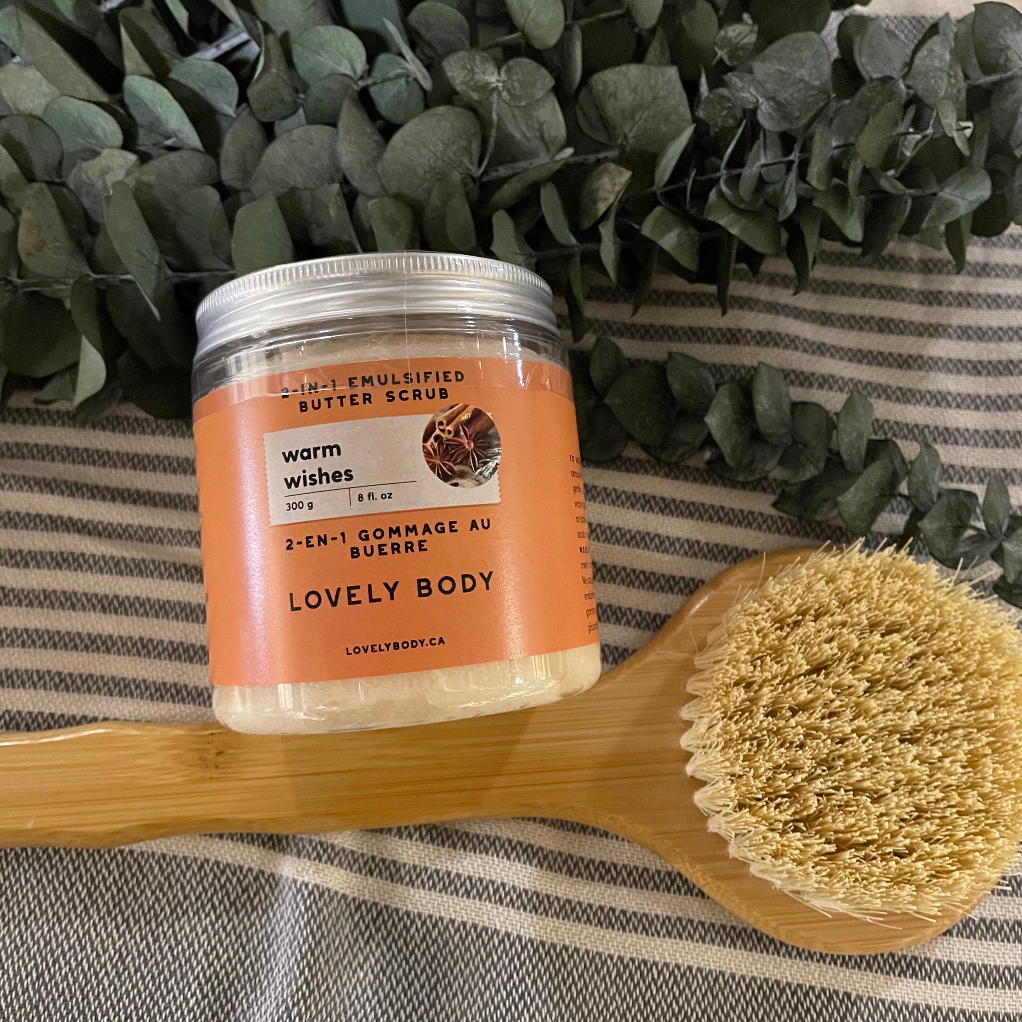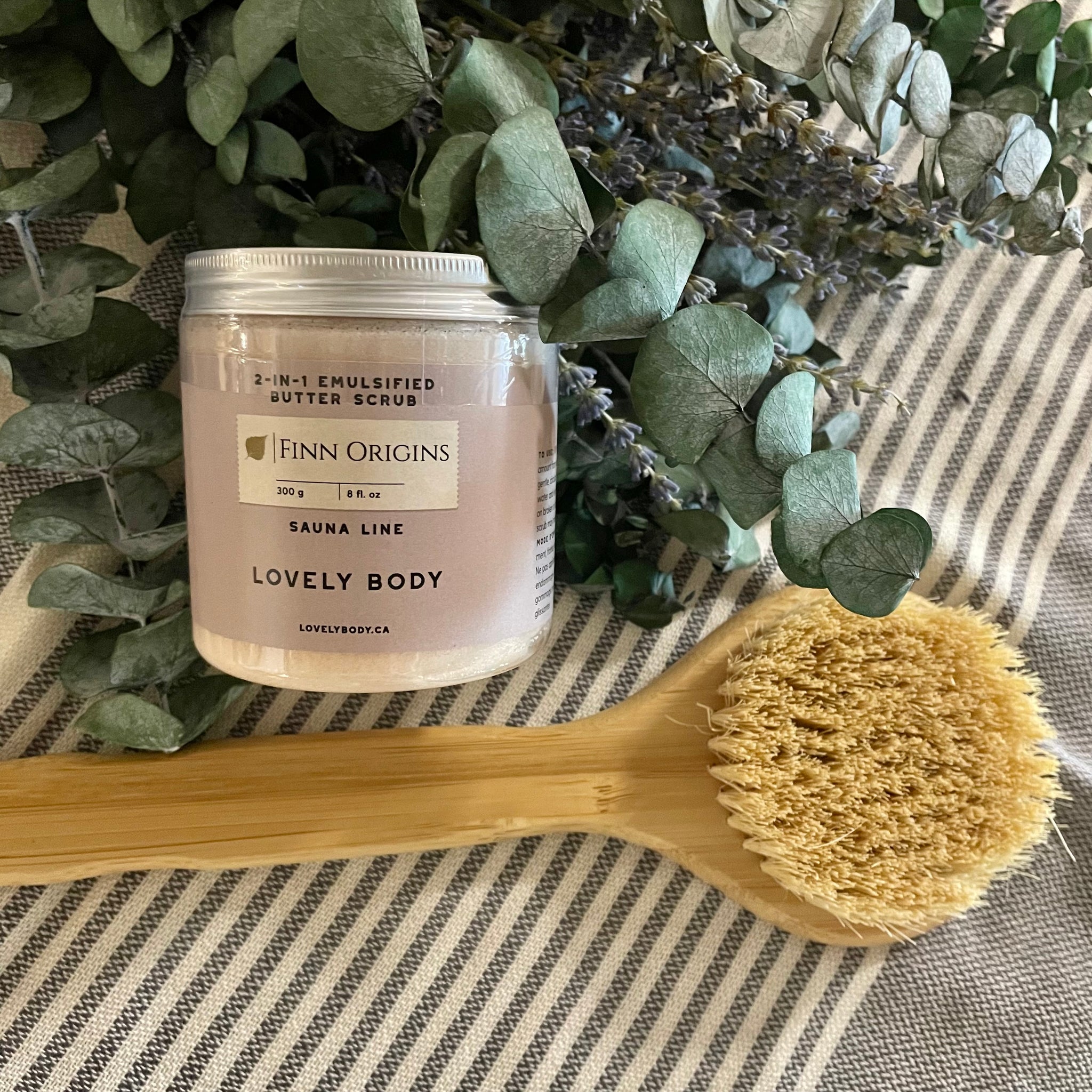 Exfoliating after a sauna session with a our 2-in-1 emulsified butter scrub can leave your skin feeling silky and smooth.